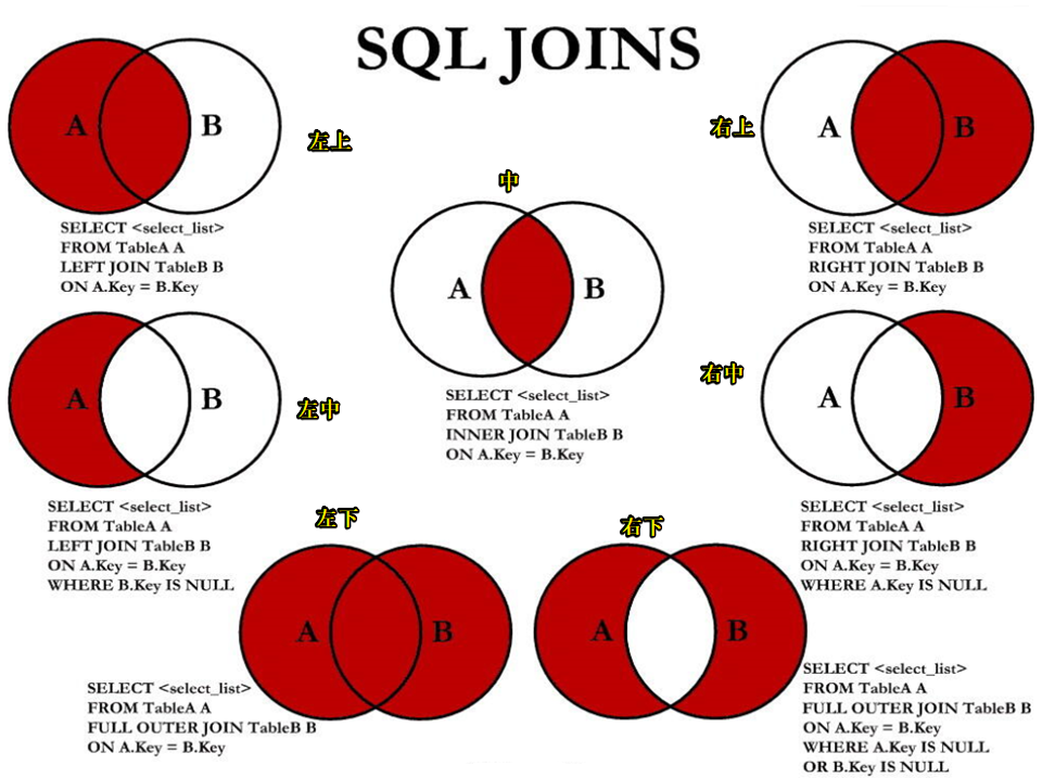 - 需要注意的是,MySQL不支持FULL JOIN,但是可以用 LEFT JOIN UNION RIGHT JOIN 代替。
