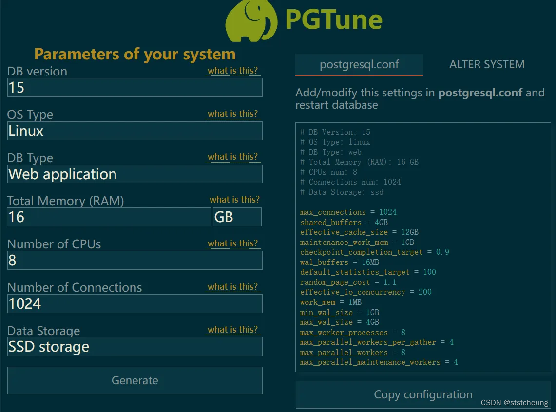 默认安装下的 PostgreSQL 配置无法完全利用现有硬件,影响Netbox的性能。 本文章讲解了如何简单去优化。 优化 项目地址:https://github.com/le0pard/pgtune 首先打开:https://pgtune.leopard.in.ua/ (此网站会根据你的选择自动生成优化配置…...