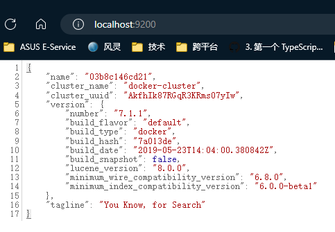 docker run -d --name es -p 9200:9200 -p 9300:9300 -e "discovery.type=single-node" b0e9f9f047e6
