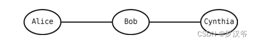 如图所示,Alice 能直接联系到 Bob,Bob 能直接联系到 Cynthia。但 Alice 无法直接联系到