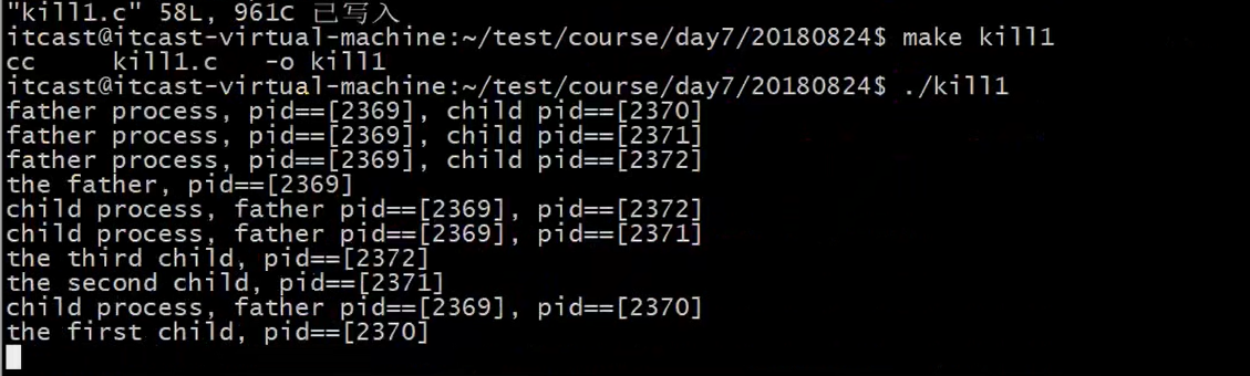 严格的说不是父进程杀死子进程,而是说父进程给子进程发送信号,kill这个函数其实不是杀死的意思,在这是给谁谁谁发送信号的意思 或者子进程杀死父进程
