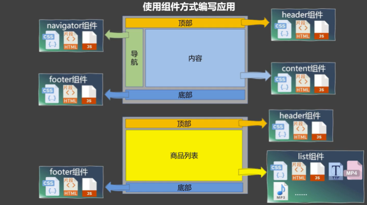 - 定义:用来实现局部功能的代码和资源的集合(html/css/js/image…)