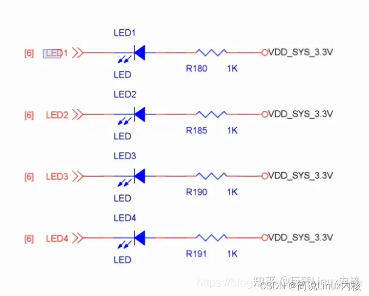 四个LED灯的电路如下图所示: