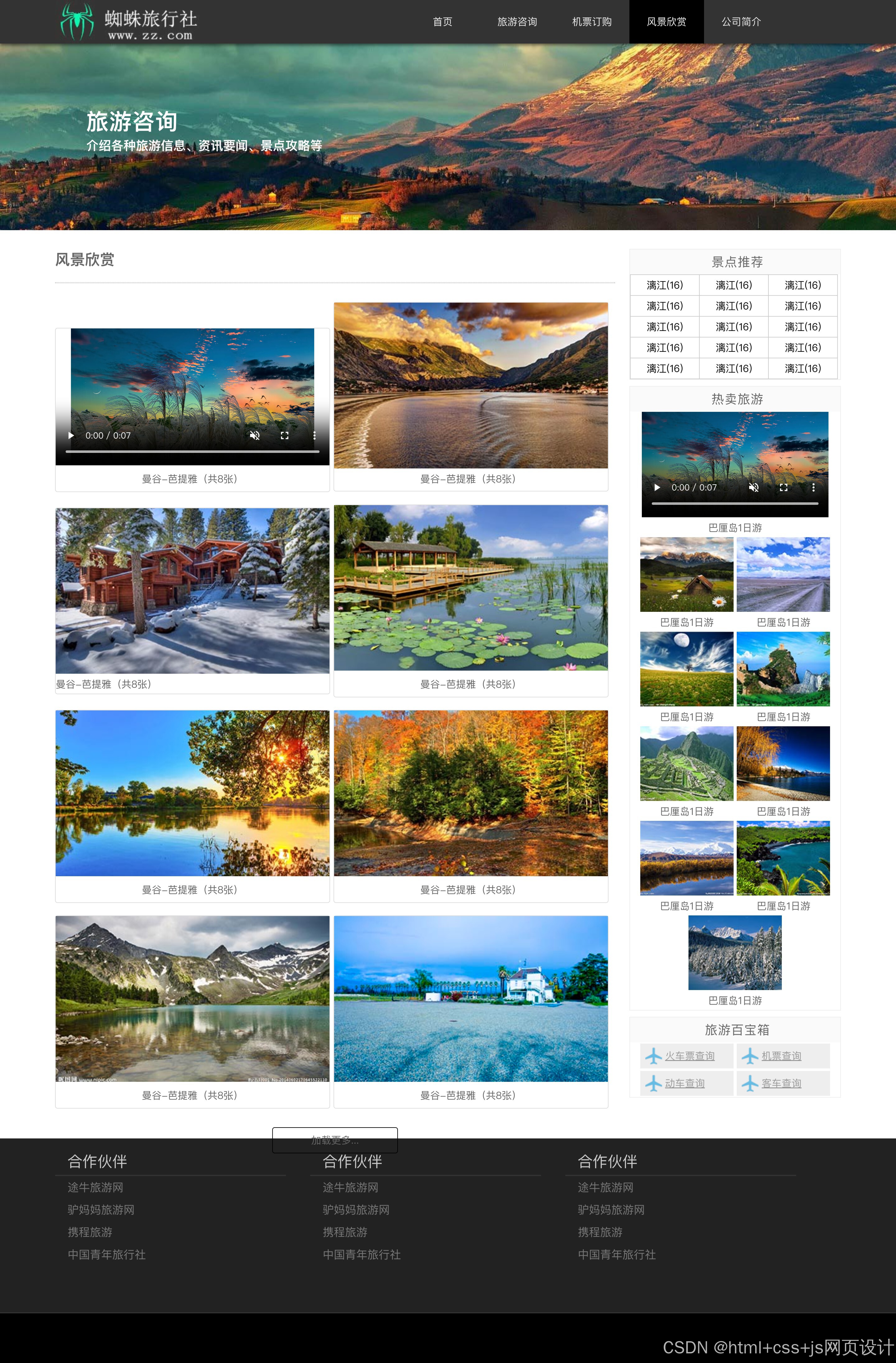 htmlcss网页设计 旅行 蜘蛛旅行社3个页面 网页作品代码简单,可使用任意HTML辑软件(如:Dreamweaver、HBuilder、Vscode 、Sublime 、Webstorm、Text 、Notepad 等任意html编辑软件进行运行及修改编辑等操作)。 获取源码 1&#…...