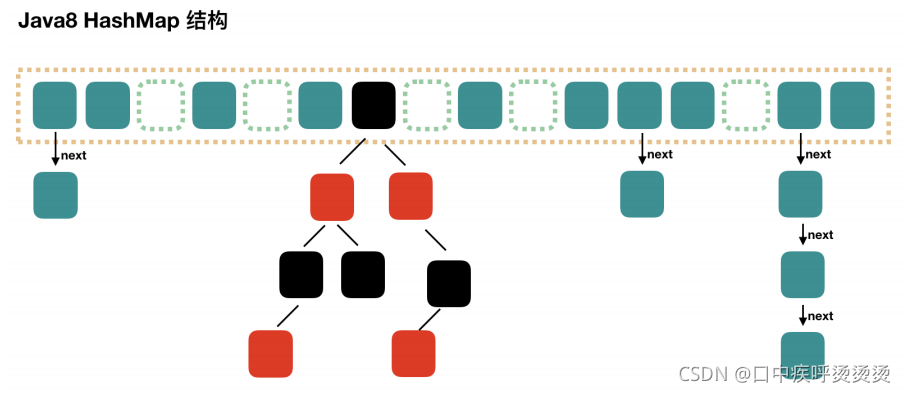 Java8 对 HashMap 进行了一些修改,最大的不同就是利用了红黑树,所以其由 数组+链表+红黑树组成。