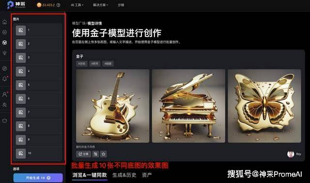 训练模型时,生成的图像都是1:1尺寸的,模型生成后,你可以点击“使用模型”,这样就可以通过垫图/文字描述的形式去生成新的图像,而且还可更改图像比例,一次可生成10张图片。