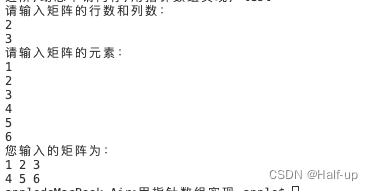 #include <stdio.h>int main() {int i,j,m,n;int sum = 0;scanf("%d%d",&m,&n);int a[m][n];printf("\n");for (int i = 0; i < m; i++) for ( j = 0; j < n; j++)scanf("%d",*(a+i)+j); //这是指针for (int i = 0; i < m; i++)for ( j = 0; j < n; j++) sum += *(*(a+i)+j); //指针引用取值printf("三角元素的和为%d\n", sum);return 0;