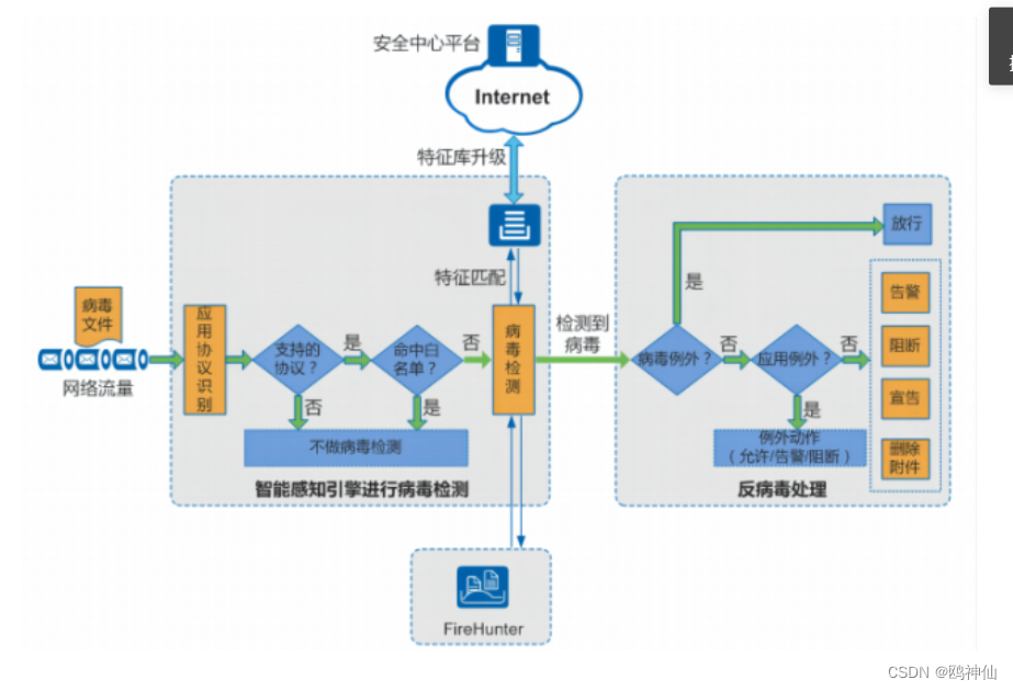 7.1 网络流量进入智能感知引擎后,首先智能感知引擎对流量进行深层分析,识别出流量对应的协议类 型和文件传输的方向。