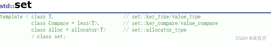 Compare:比较容器,set默认按照小于来比较,如果要对自定义类型进行比较的时候可以传入自定义的比较容器。