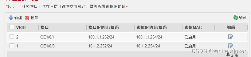 [SW2]ip route-static 0.0.0.0 0 10.1.2.254 --- 配置路由缺省指向防火墙虚拟网关