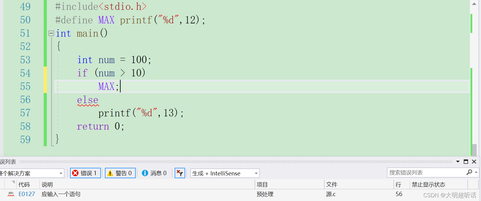 🌺按照我们正常的代码的编写的逻辑我们上面的代码应该可以正常的运行但是实际上却不是,这是因为我们在if当中使用了宏定义替换,而我们的宏定义替换已经定义了一个分号,而我们在if语句当中又重新加入了一个分号,使得我们下面的if无法进行特定的匹配。我们可以试着将我们宏定义当中的分号去掉,或者给我们if语句当中的语句加一个括号进行一下检验。