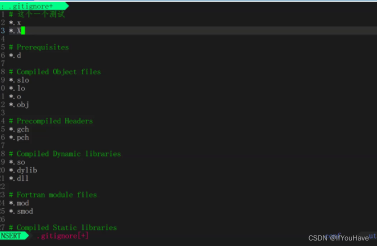 通过编辑此文件,可以将不想要提交的一些文件的后缀加入,就会进行屏蔽