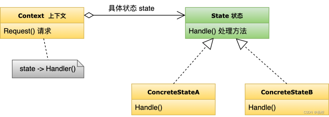状态模式是说在不同的状态下,有不同的处理行为。对工作中来说,我们可能有状态好的时候,有状态不好的时候,主观的处理的手段是调整状态。但是如果调整不过来,我们应该进行不同的操作。比如,脑子好的时候,想一些复杂问题;脑子嗡嗡的时候,做一些简单整理。
