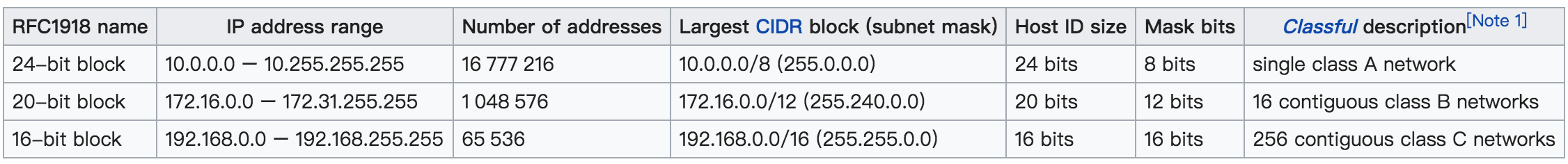 背后的原因是这样的,国际标准组织在 IPv4 地址空间里面,专门划出了一些网段,这些网段不会用做公网上的 IP,而是仅仅保留做内部使用,我们把这些地址称作保留网段。