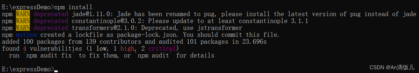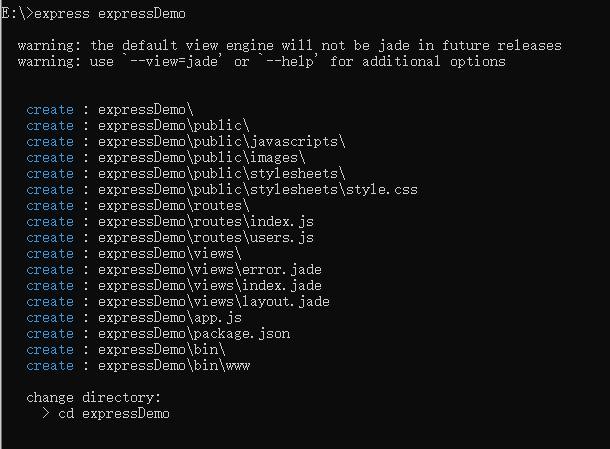 创建一个express项目 执行express expressDemo(expressDemo是项目名)