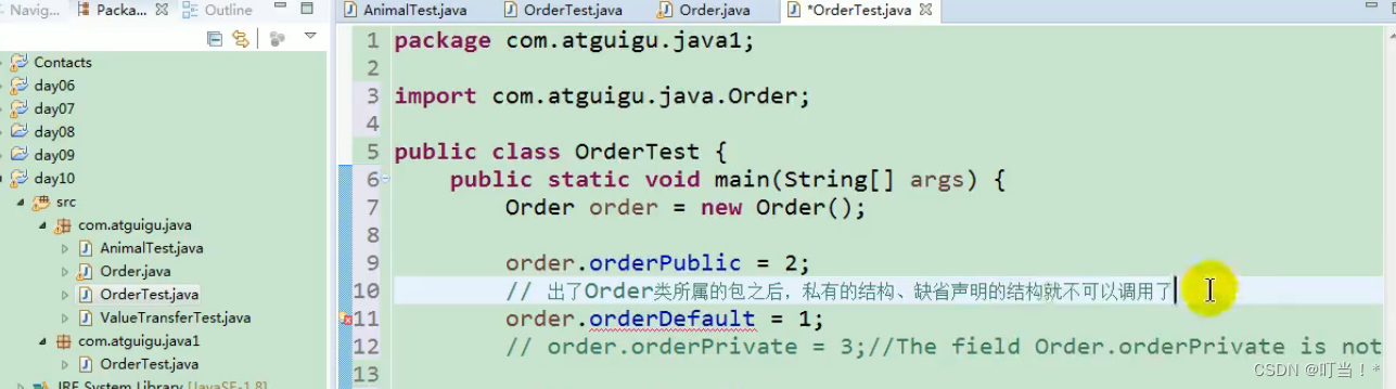 p3.age = 10;p3修改age,即p1再去调age即为10System.out.println(p1.age); //10