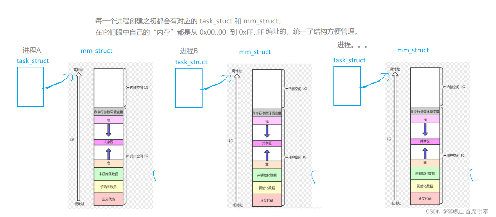 “好,那我现在明白了:进程地址空间就是虚拟地址/线性地址 (地址从00到FF呈线性增长),但是,