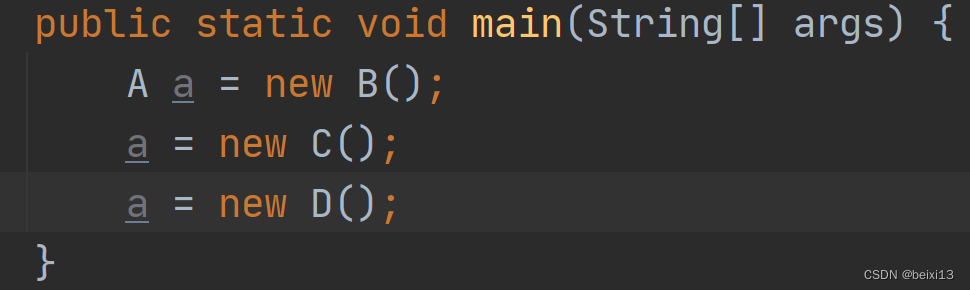 我还可以这样,将a指向C ,D类的对象,也是向上转型,只要运行类型是编译类型的子类就可以