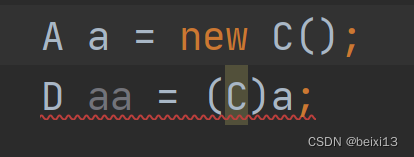 将a 的编译类型强制转换为B类型,并用一个引用aa接收