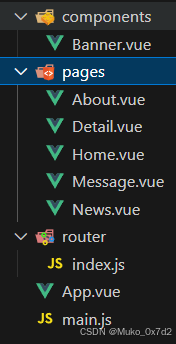 pages文件夹,一般组件通常存放在components文件夹。 - 通过切换,“隐藏”了的路由组件,默认是被销毁掉的,需要的时候再去挂载。