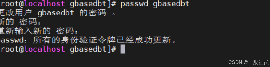 输入完 passwd gbasedbt 可以更新一下密码,如果使用gbasedbt 作为密码会提示密码太过简单无法连接