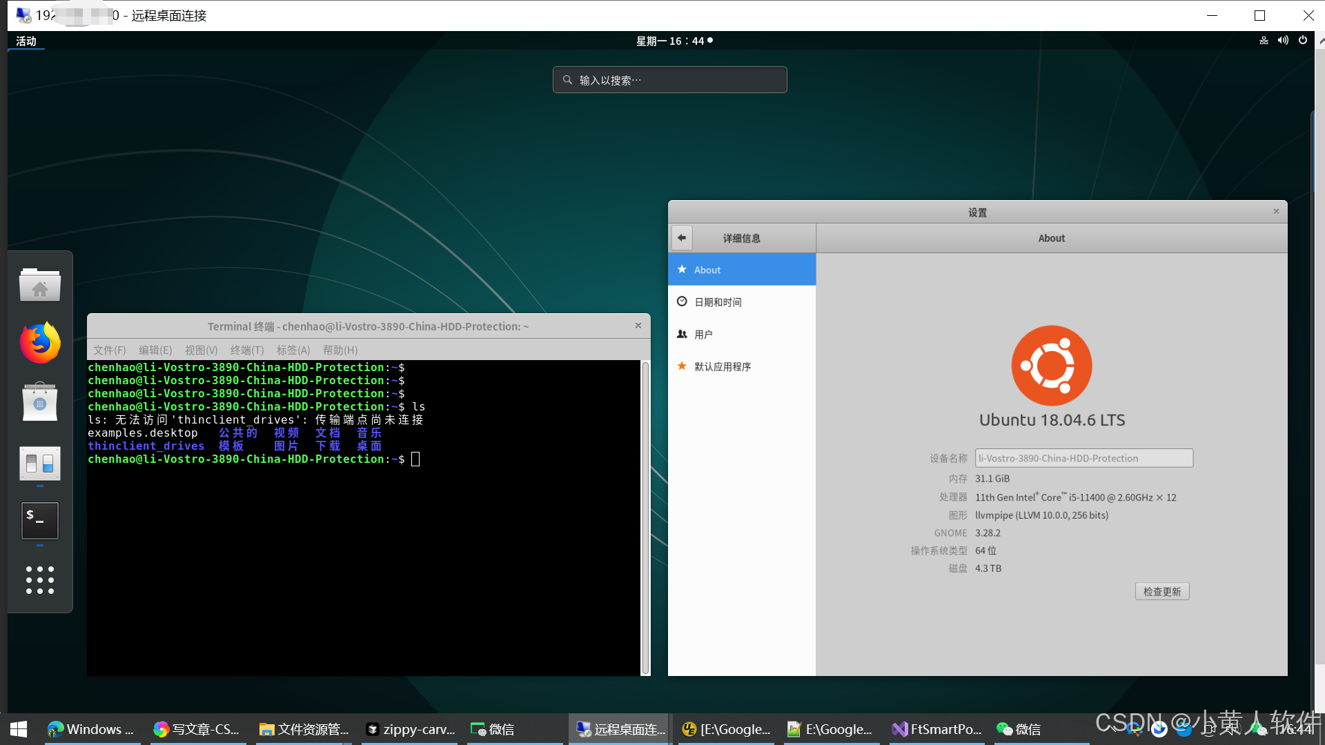Windows 远程桌面连接Ubuntu操作 可以自由相互复制文件 粘贴板等