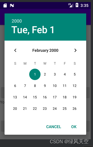 DatePickerDialog则是内置了日期选择器的弹窗,用onDateSet方法设置确定日期之后的动作。