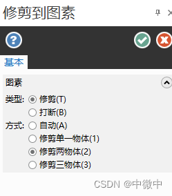 方式 二、在旋转前,用“修剪到图素” - 类型“修剪” - 方式“修剪两则物体”来去掉多余部分(“壁厚”不要选中),而不是用“分割”命令来去除,前述的问题与此也有关系