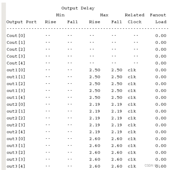set_output_delay -clock clk -max 2.5 [get_ports out1]