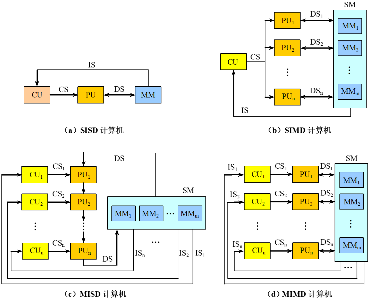 - 多倍性:在系统最受限的部件上,同时处于同一执行阶段的指令或数据的最大数目