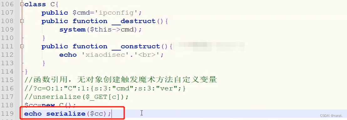 __sleep(): //serialize()函数会检查类中是否存在一个魔术方法__sleep(),如果存在,该方法会被优先调用 三、序列化和反序列化演示
