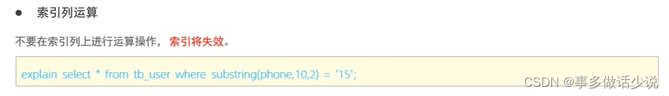 - 若跳过了某一列,则从这一列开始,之后的索引失效。