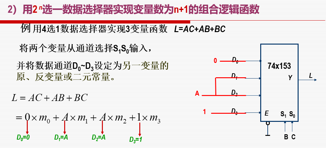 产生逻辑函数 最小项 变量>n要选一个出来接到相应输入端子D上