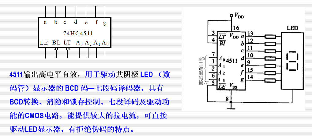 七段显示译码器 CMOS 74HC4511 数码管