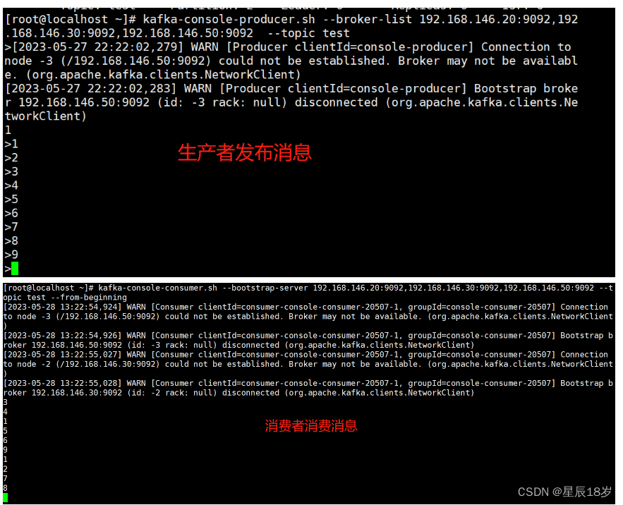 --replication-factor:定义分区副本数,1 代表单副本,建议为 2