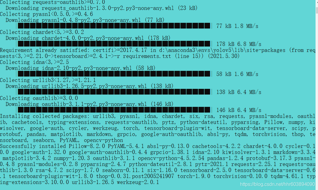 用conda为例,新建一个python3.8的版本的环境,可以就叫yolov5,然后进入下好的代码文件夹根目录,命令行激活新建的yolov5这个环境,并运行下面这句话来安装所有的必须的依赖包: