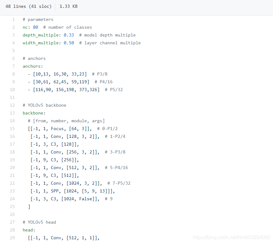 2、项目的models目录下的yolov5s.yaml(也可选择其他的模型方法)文件修改: