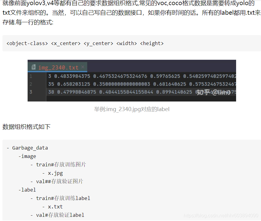 接下来把标签文件放入 labels/train2021/中,但是不是把上一篇文章的一堆json文件放过来,而是把那些json转换为txt文件,因为yolov5需要的标签文件就是txt文件。这里借用一张知乎的博客截图,需要注意的是这一项需要把字符串对应顺序换成012345的数字,不然报错。