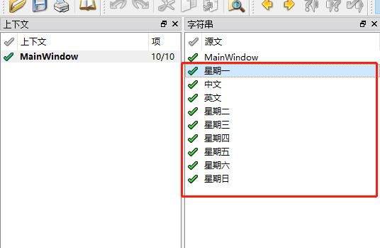 翻译:使用Qt Linguist打开要翻译的ts文件,对翻译源进行相应语言的翻译。