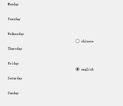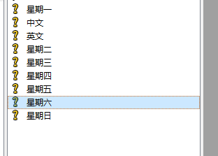 QString weekStr[2][7] = {"星期一","星期二","星期三","星期四","星期五","星期六","星期日",\